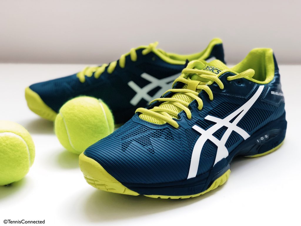 Another popular shoe for the tennis faithful has been the ASICS Gel-Solution Speed 3. Worn by Steve Johnson on Tour, this speed oriented sneaker is by no means the most durable on court, but the comfort and feel that it provides during match play is definitely worth the trade off. Highlighted in its latest ink blue, white and sulphur spring colorway, the Gel-Solution Speed 3 is great on all surfaces and is ultimately recommended as a match-day shoe.