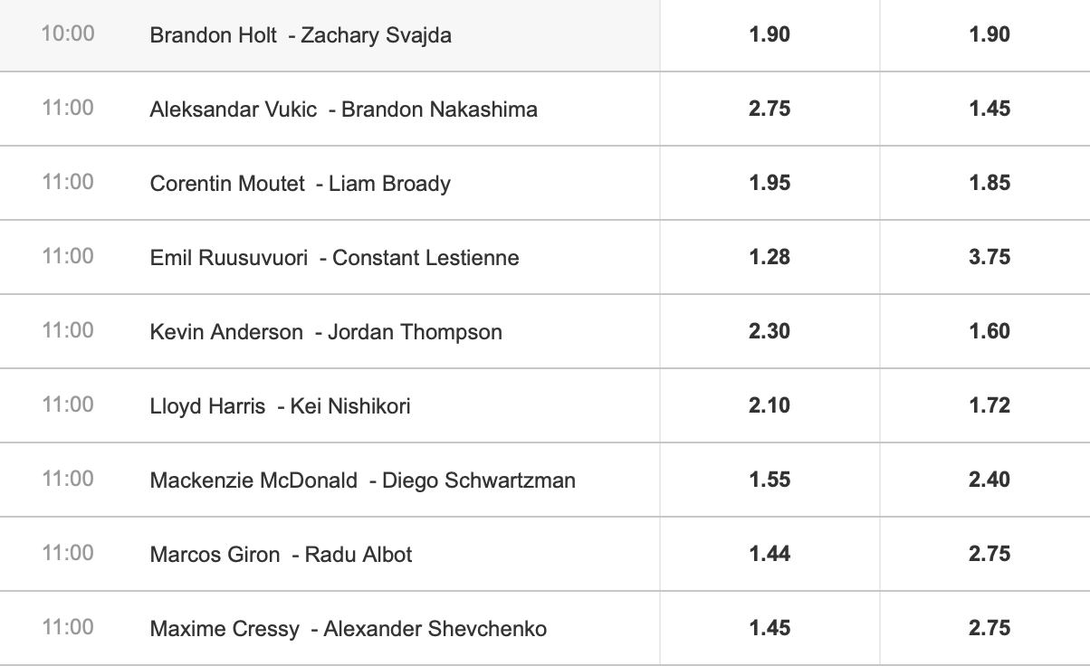 As always, Betway will have great odds on the entire week in Washington, D.C., which can be viewed below.