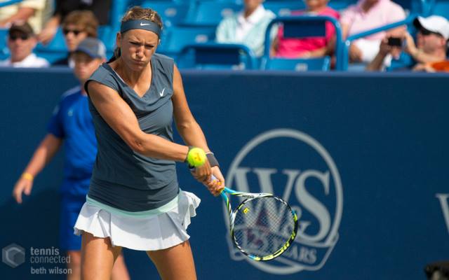 Having lost top draw Agnieszka Radwanska on the first day, arguably their next biggest draw, wildcard fourth seed and World No. 8 Azarenka put up a good fight, coming back from 2-4 down to reel off four games in a row before being left standing at the start of the second set as Giorgio took control racing out to a 5-0 lead before Azarenka mounted a bit of a comeback.