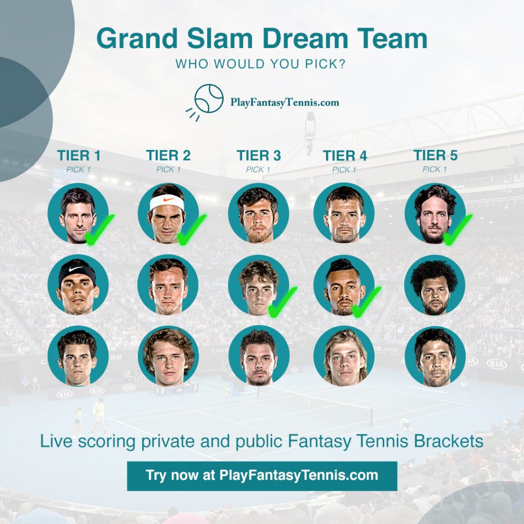 PlayFantasyTennis.com brings a new twist by approaching fantasy tennis on a tournament by tournament basis. Any given bracket will only last for the duration of the tournament. Players are separated into tiers by the bracket administrator and users select their favourite pick(s) from each category for the tournament. Points are awarded to each player on your team as the tournament progresses for winning games, sets, and matches. Points are also docked from players for losing games and losing sets.
