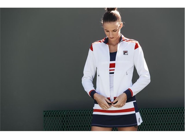 The Heritage collection has evolved to feature a new set of styles for the start of the season. The Heritage offerings continue to utilize the brand’s Iconic red, white and navy palette, with archival design details like stripes, color blocking and pleats. Classic silhouettes feel ultra-now, with pieces such as the loose layering practice tank, slim fit pant and striped pleated skort. Updated proportions include a long cropped fit on the Heritage Jacket and fresh details like a large FILA outline print. The collection’s premium plus jersey fabrications make for premier texture throughout. The Heritage styles will be worn by FILA players including Karolina Pliskova, currently ranked #6 on the WTA Tour.