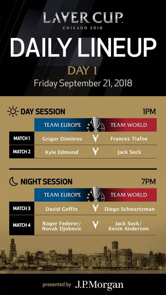 Friday’s order of play for Day 1 at the 2018 Laver Cup from Chicago, U.S.A. can be seen below.