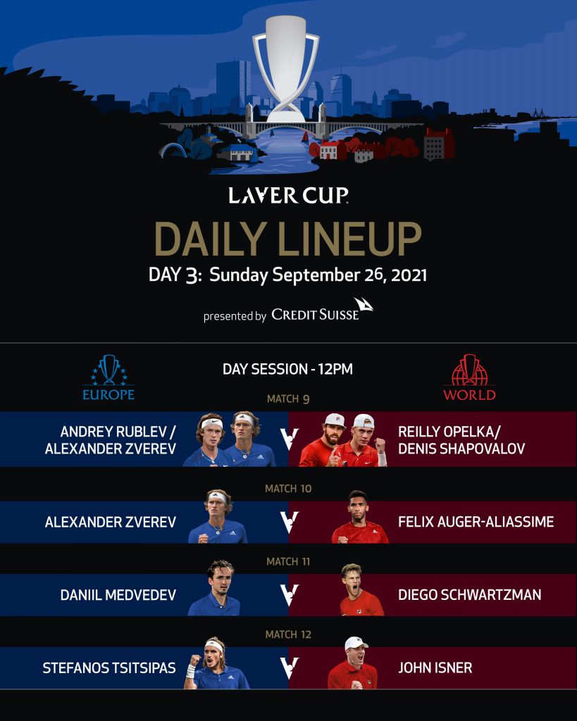 Sunday’s order of play at the 2021 Laver Cup can be seen below.