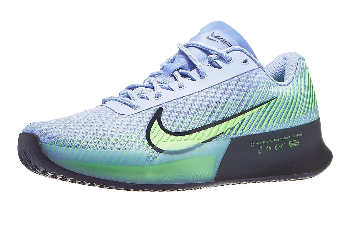 The Nike Zoom Vapor 11 Clay Shoe in Cobalt and Green.
