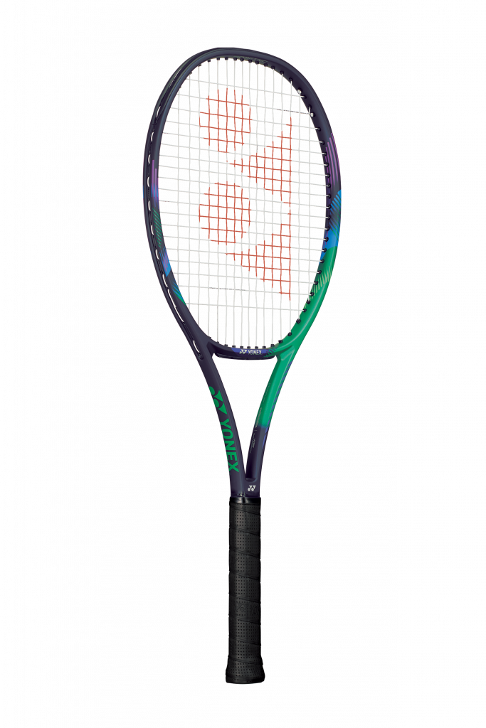 Featured in an eye-catching green, black and purple colour pallet, the VCORE PRO 97H 330 takes over for the VCORE 97 Pro (2019), while upholding many of the great characteristics of this line. For this iteration of the VCORE 97, Yonex modified the shaft geometry of the frame to help the racquet bend more effectively during impact points.