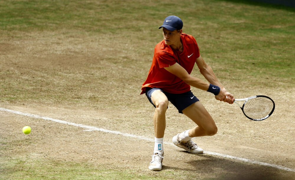 Tennis - Halle Open - OWL Arena, Halle, Germany - June 23, 2024 Italy's Jannik Sinner in action during the final against Poland's Hubert Hurkacz REUTERS/Leon Kuegeler