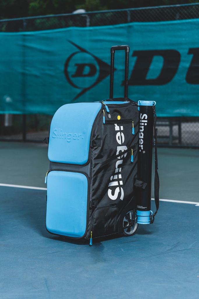 Slinger Bag enables tennis players to get out on court to play at any time without the need to find a playing partner – whether that be at their club, local park, on their driveways or in any other available open space. Slinger Bag is lightweight, wheeled like a trolley bag, and easily transported in the trunk of the smallest saloon or sedan car. It offers players the versatility to store all of their tennis gear including racquets, shoes, towels and accessories. At the average price of two to three performance tennis racquets it is highly affordable when compared to comparable performing traditional ball machines.