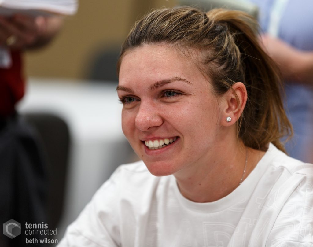 Simona Halep meets the press at the 2017 BNP Paribas Open in Indian Wells.