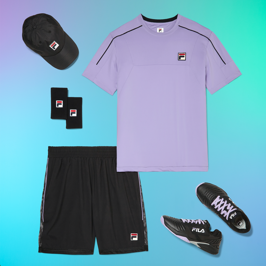 ATP Tour players John Isner and Sam Querrey will look to make a statement on the clay courts of Paris wearing the men’s Adrenaline line in a sharp, decorated color palette of lavender/ black / dark grey / high rise. The collection features two classic FILA crew shirt styles: the Performance Crew, which includes piping along the sleeve for subtle detailing, and is offered in black / lavender and lavender / black; and the Vented Crew, which fashions new contrast piping at the front. For those looking to break away from the pack, the Melange Polo is a clear winner, combining a clean three button contrast color placket and a self fabric collar for unmatched comfort. The men’s Short, offered exclusively in a black / lavender colorway with convenient front welt pockets, rivals any performance tennis short on the market.